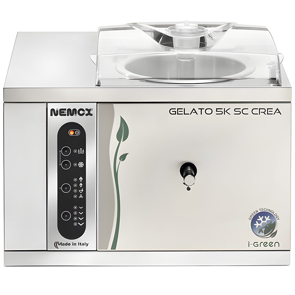 Фризер для мороженого Nemox Gelato 5K Crea SC — это профессиональный итальянский батч-фризер, предназначенный для приготовления твердого мороженого, джелато и сорбета без ледовой крошки. Модель сочетает в себе высокую производительность (до 5 кг/ч), полностью автоматическое управление и ручные настройки для опытных пользователей. Четыре предустановленные программы и четыре режима хранения позволяют с легкостью создавать классическое итальянское джелато, полумягкое мороженое, граниту и быстро охлаждать продукты. Благодаря фиксированной чаше из нержавеющей стали объемом 3,2 л, встроенному сливу и съемным лопастям, этот фризер обеспечивает удобство эксплуатации и безупречное качество десертов в кафе, ресторанах и кондитерских.