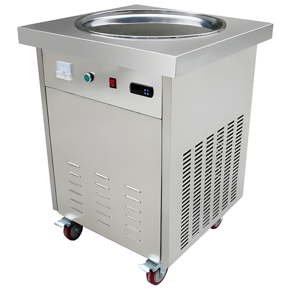 Фризер для жареного мороженого Koreco SSI150FIC — это мобильное профессиональное оборудование для приготовления популярного ролл-мороженого (жареного мороженого) на предприятиях общественного питания, в кафе, ресторанах и на выездных мероприятиях. Аппарат оснащён одной круглой охлаждаемой поверхностью диаметром 50 см, на которую наносится жидкая смесь. С помощью специальных лопаток смесь застывает, разделяется на полоски и сворачивается в аккуратные роллы, которые затем украшаются топпингами. Благодаря мощному компрессору LG, надёжному корпусу из нержавеющей стали и удобной мобильности, этот фризер станет незаменимым помощником для приготовления эффектного и вкусного десерта прямо на глазах у гостей.