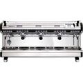 Рожковая автоматическая кофемашина Nuova Simonelli Aurelia Wave T3 3 Gr с подключением к водопроводу предназначена для приготовления кофе эспрессо и капучино. Оснащена тремя высокими электронными группами, экономайзером, краном для подачи горячей воды, двумя паровыми кранами Cool Touch и LED-подсветкой. Осуществляет автоматическое дозирование горячей воды и кофе. Бойлер изготовлен из меди, корпус из нержавеющей стали с вставками из ABS-пластика чёрного цвета