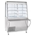 Модуль оснащен контроллером регулировки температуры в интервале от +5 до +15°С. Закрытая витрина оборудована системой принудительной циркуляции холодного воздуха и подсветкой. В основании витрины размещена охлаждаемая ванна с набором гастроемкостей.