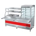Прилавок-витрина Abat ПВХМ-70КМУ НЕРЖ совмещает в себе сразу три разных прилавка. Холодильную витрину с возможностью регулирования температуры в интервале от +5 до + 15°С. Мармит первых блюд, оснащенный одной электрической конфоркой и мармит вторых блюд, работающим на горячем паре.