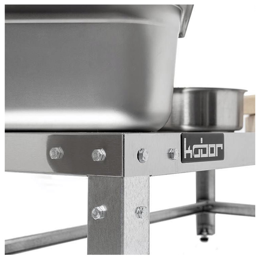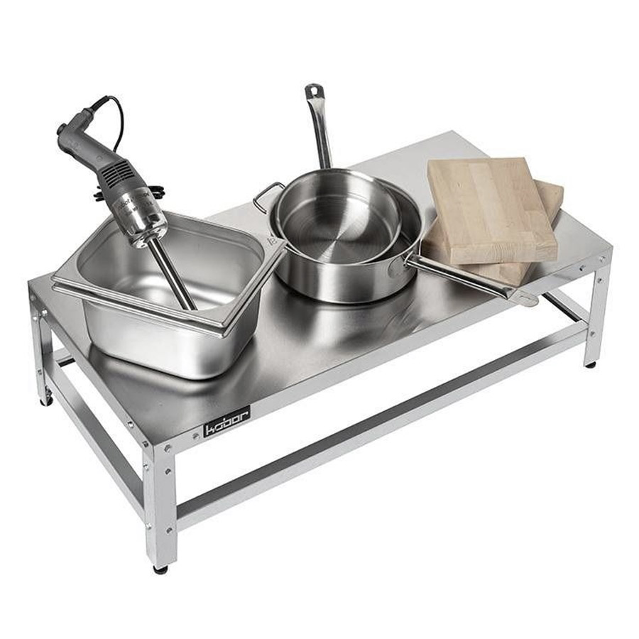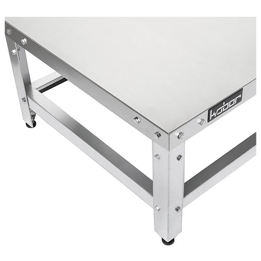 Столешница изготовлена из нержавеющей стали AISI 430, каркас - уголок из оцинкованной стали.