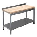 Стол оснащен буковой столешницей и нижней сплошной полкой.