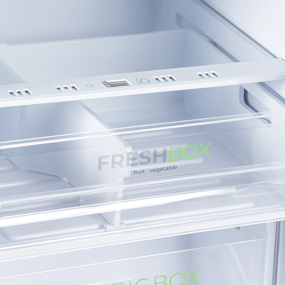 - 4 стеклянных полоки, 2 ящика, 4 контейнера на дверцу, подвесная полка для бутылок