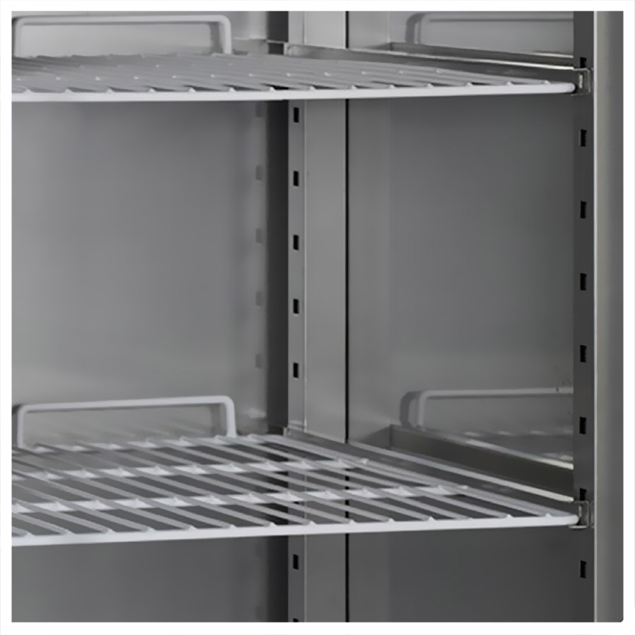 - Белые решётчатые полки GN 2/1 регулируются по высоте