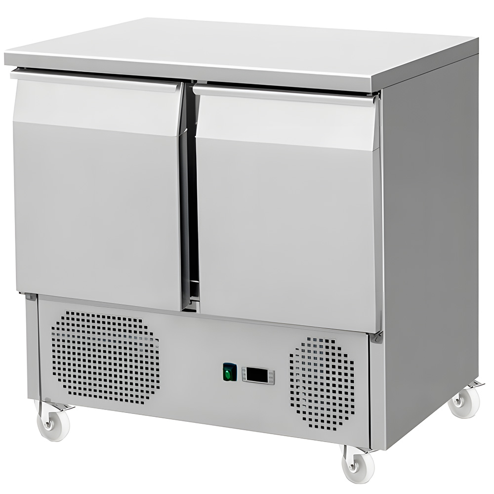 Стол холодильный Koreco S/901 — это профессиональное оборудование для предприятий общественного питания и торговли, предназначенное для обработки ингредиентов, приготовления блюд и кратковременного хранения скоропортящихся продуктов и напитков. Модель выполнена из нержавеющей стали AISI 201 и оснащена двумя дверцами, за которыми скрываются полки для гастроёмкостей стандарта GN 1/1.