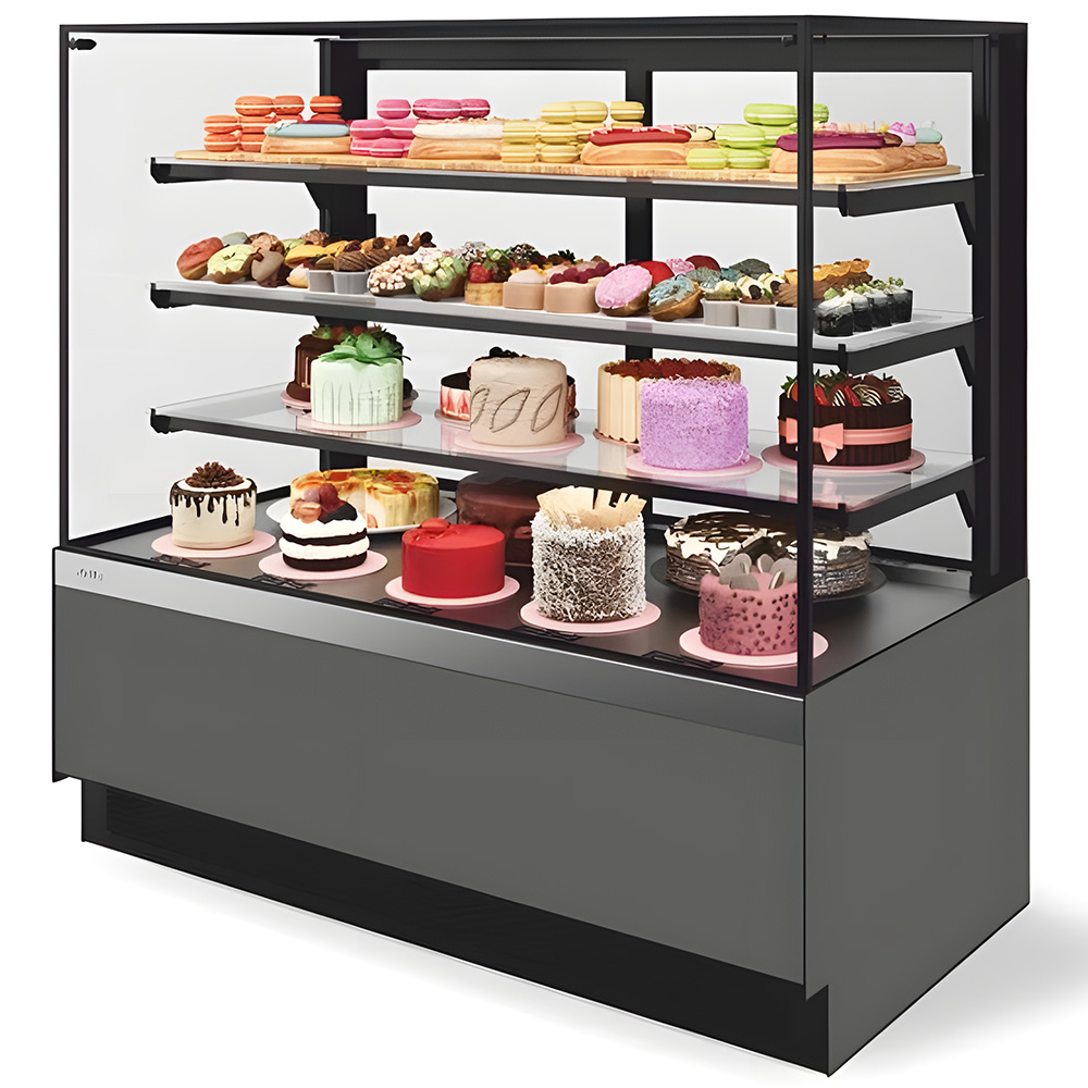 Витрина кондитерская Chilz Vete II kub lux 90 – оборудование из обновленной серии кондитерских витрин VETE KUB. Предназначена для самообслуживания, без переднего стекла. Это идеальное решение для точек общественного питания и магазинов, специализирующихся на продаже кондитерских изделий.
