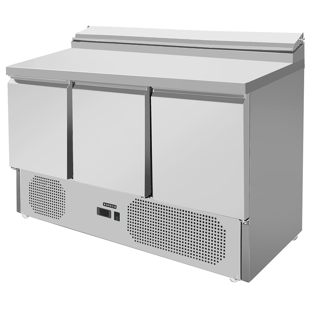 Стол для салатов Koreco PS/300 — это профессиональное холодильное оборудование, предназначенное для кратковременного хранения ингредиентов и приготовления салатов, холодных закусок, сэндвичей и других блюд на предприятиях торговли и общественного питания. Модель сочетает в себе удобную рабочую поверхность из нержавеющей стали и вместительную холодильную камеру с тремя дверцами, а также встроенную гастронормированную витрину с откидной крышкой. Благодаря продуманной компоновке все необходимые ингредиенты находятся под рукой, что ускоряет процесс приготовления и повышает эффективность работы персонала.