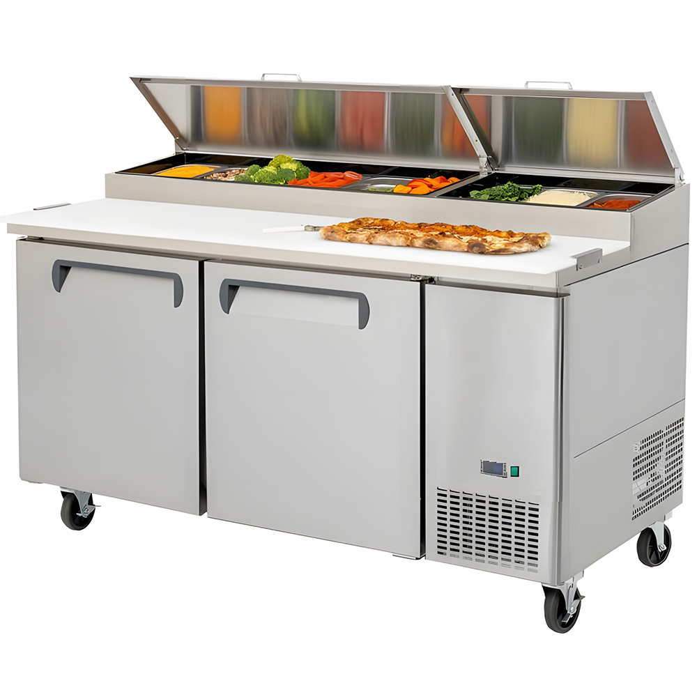 Стол для салатов Koreco TPP/67 — это профессиональное холодильное оборудование с двумя встроенными гастронормированными витринами, предназначенное для раскатки теста и обработки ингредиентов при приготовлении пиццы, салатов, закусок и сэндвичей, а также для охлаждения и кратковременного хранения скоропортящихся продуктов на предприятиях общественного питания и торговли. Модель сочетает просторную холодильную камеру с динамическим охлаждением, удобную столешницу из полипропилена и две независимые зоны для гастроемкостей, что позволяет оптимизировать рабочий процесс и держать все необходимые ингредиенты под рукой.