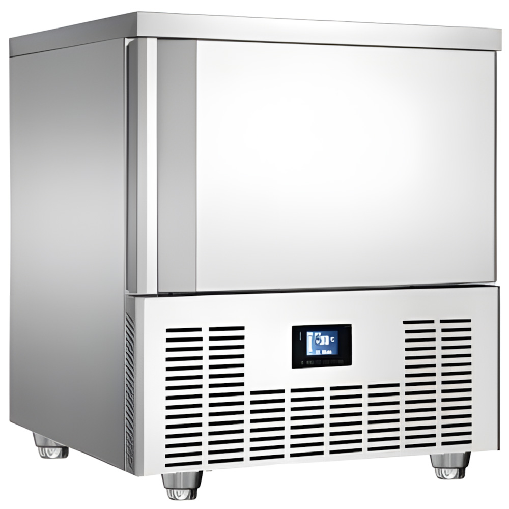Шкаф шоковой заморозки Koreco GNBCF5 — это компактное профессиональное оборудование, предназначенное для быстрого охлаждения и заморозки продуктов в заведениях общественного питания, небольших кулинариях, кафе и ресторанах. Модель работает в двух режимах: шоковое охлаждение (до 20 кг за цикл) и шоковая заморозка (до 12,5 кг за цикл). Благодаря интенсивному обдуву и точному контролю температуры продукты сохраняют свою структуру, цвет, вкус и питательные свойства.