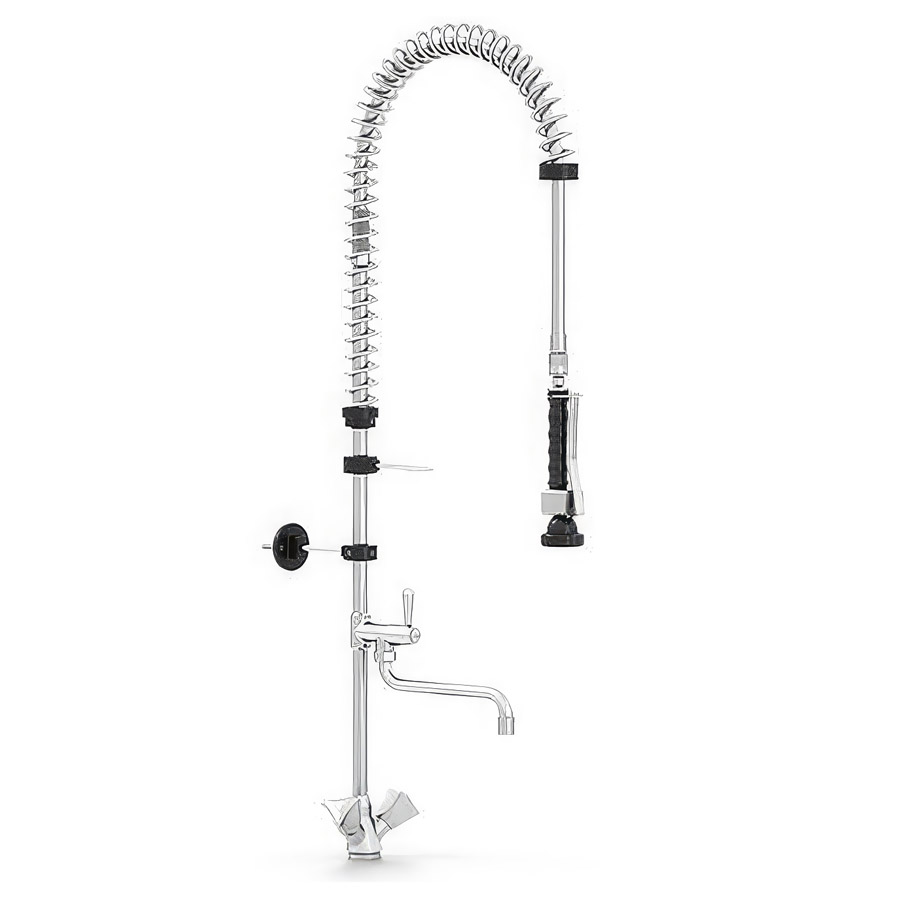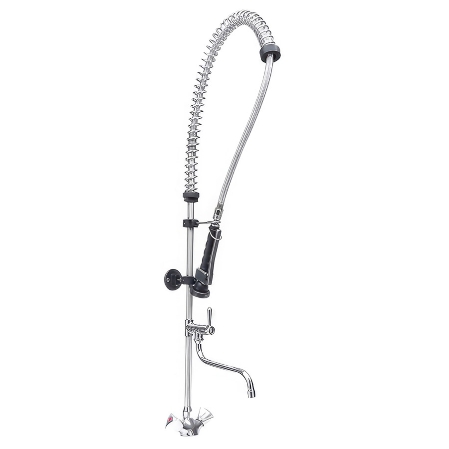 Устройство душирующее Cancan MT02 Delux используется для предварительной очистки посуды перед загрузкой её в посудомоечную машину, а также для мытья овощей и фруктов на предприятиях общественного питания. Модель оснащена смесителем для горячей и холодной воды и кронштейном для крепления на стену. Корпус, смеситель и система крепления к стене изготовлены из хромированной латуни, труба - из нержавеющей стали, внутренняя трубка - из нетоксичного термоусадчивого материала EPDM, шланг имеет ПВХ-покрытие.